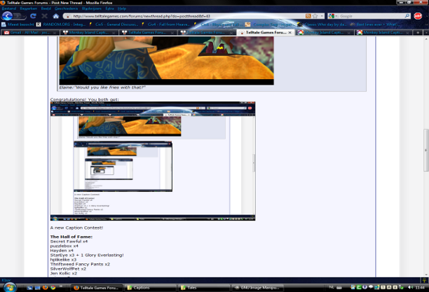 PM me if you have a picture for the next caption contest. May be fanart too, as long as it's your own.